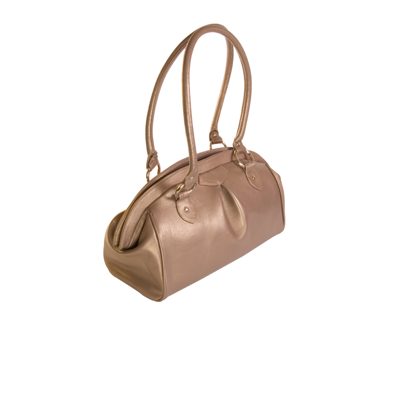 Titon (golden-brown) leather handbag with brown inner lining. Multiple interior pockets. Nickel feet.