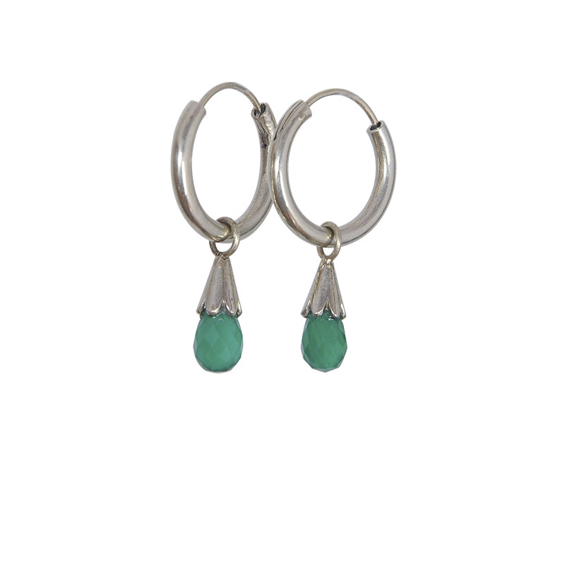 JEWELRY -> Earrings -> Green Onyx Tear Drop German Silver Earring