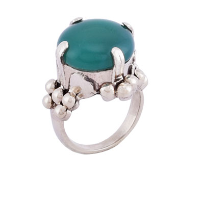 Green Onyx Circle German Silver Ring