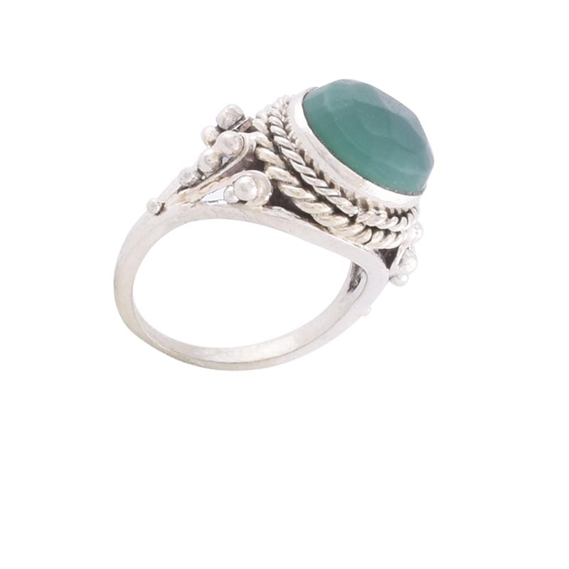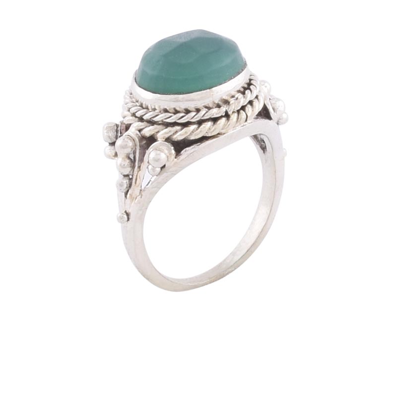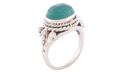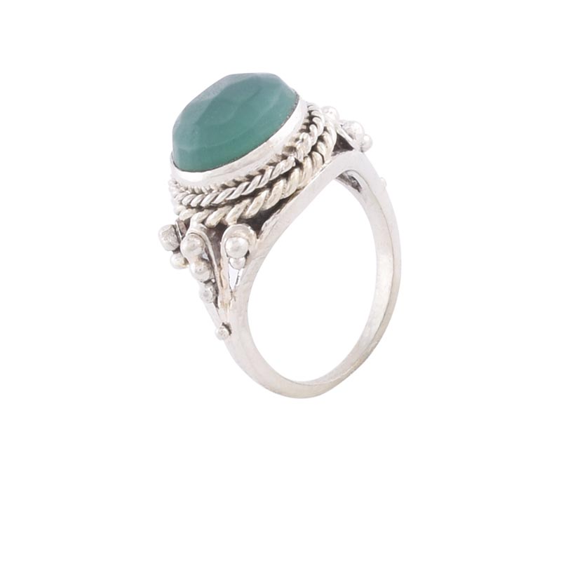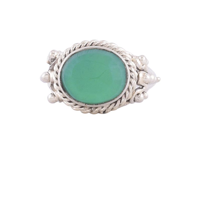 JEWELRY -> Rings -> Green Onyx Oval German Silver Ring