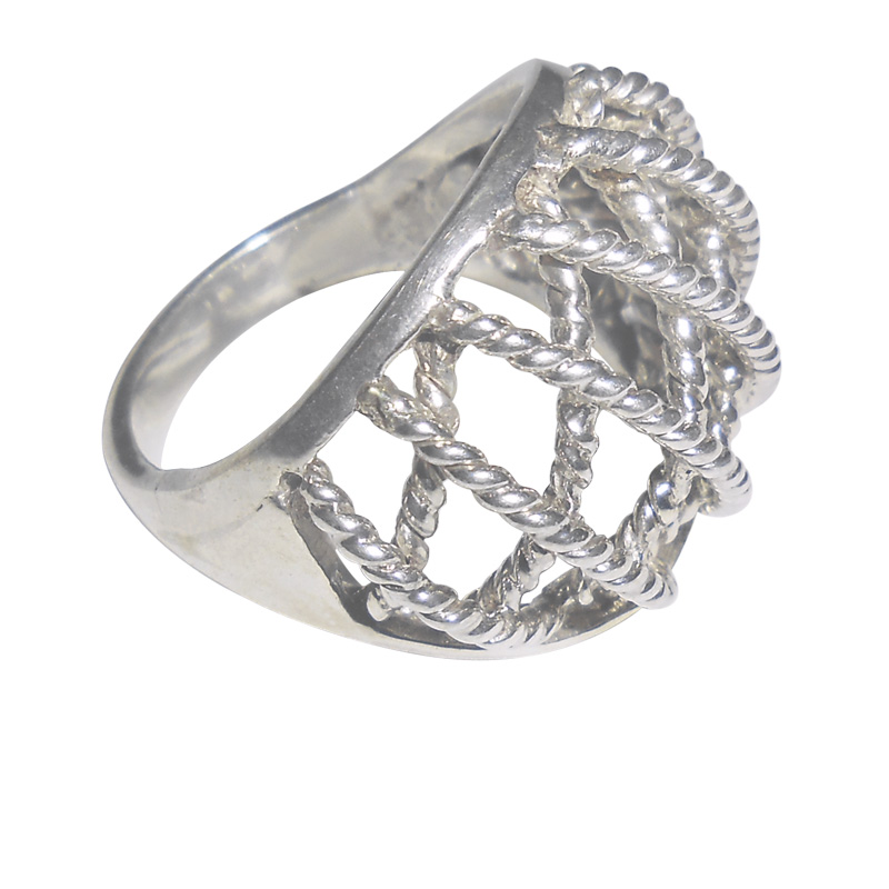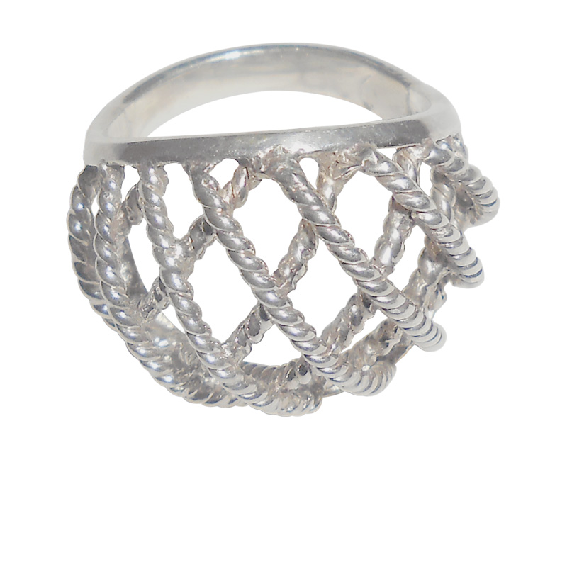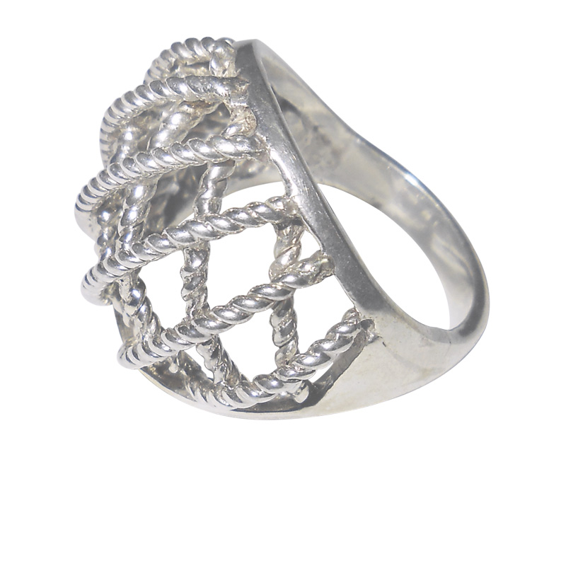 Twisted sterling silver wire gives the effect of rope. Rounded sterling silver ring.