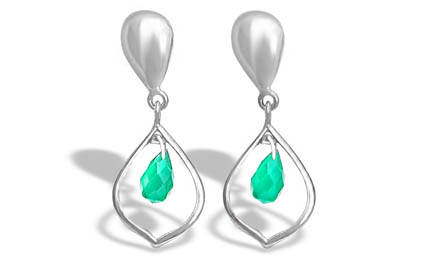 German Silver tear drop earring with Green Onyx cut stone. Push closure.