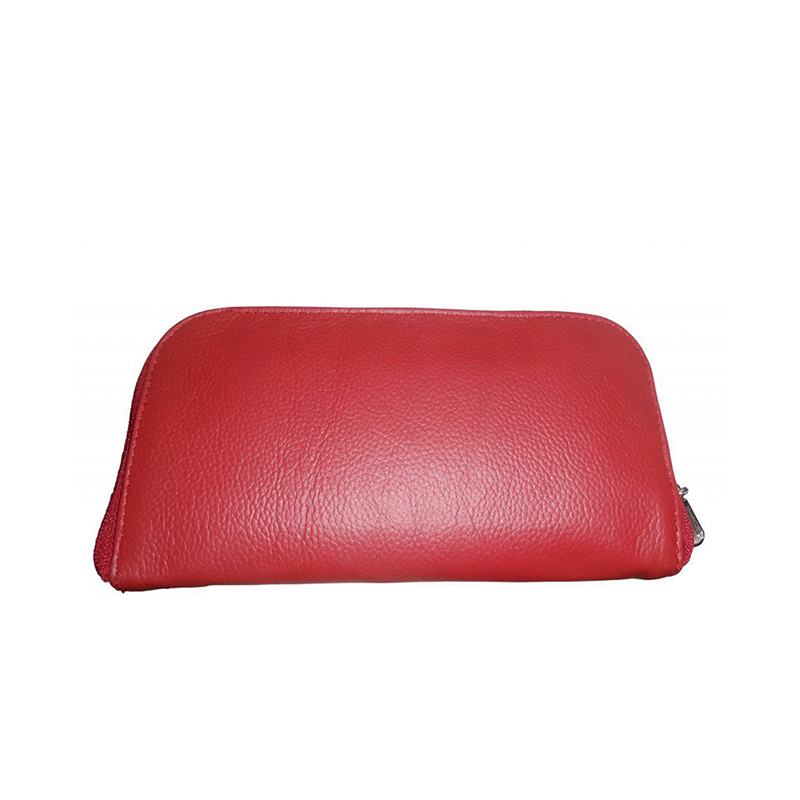 A great companion wallet crafted from Red leather with black polyester inner lining. Design includes multiple slots to carry everyday essentials. Zipper closure.