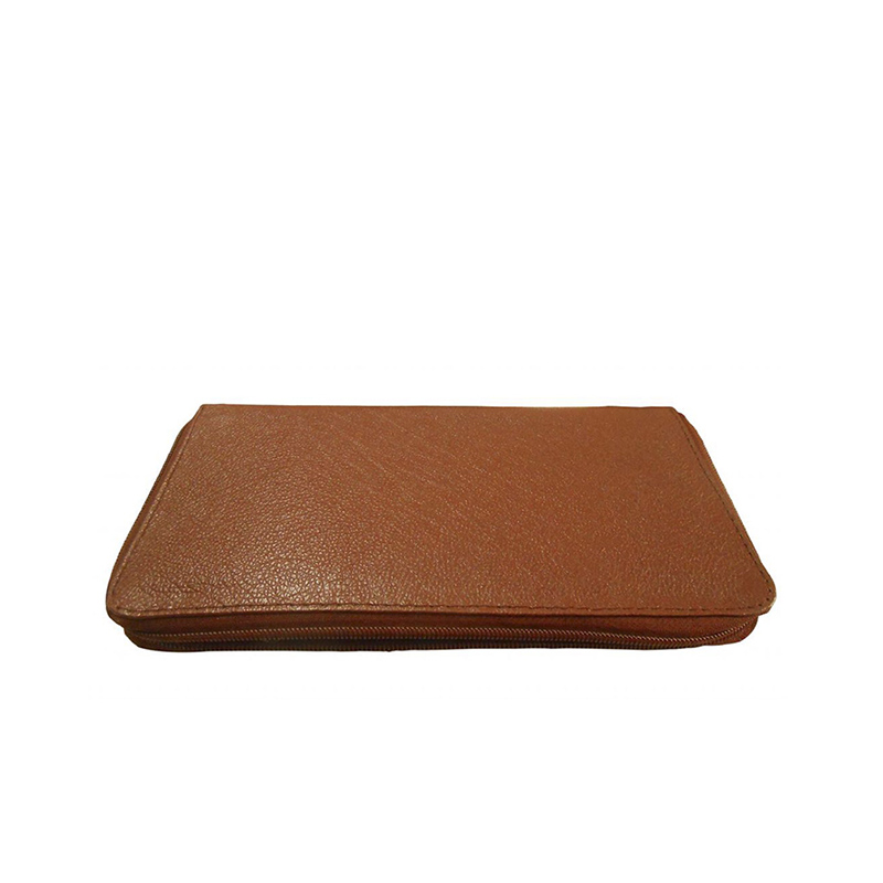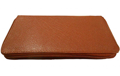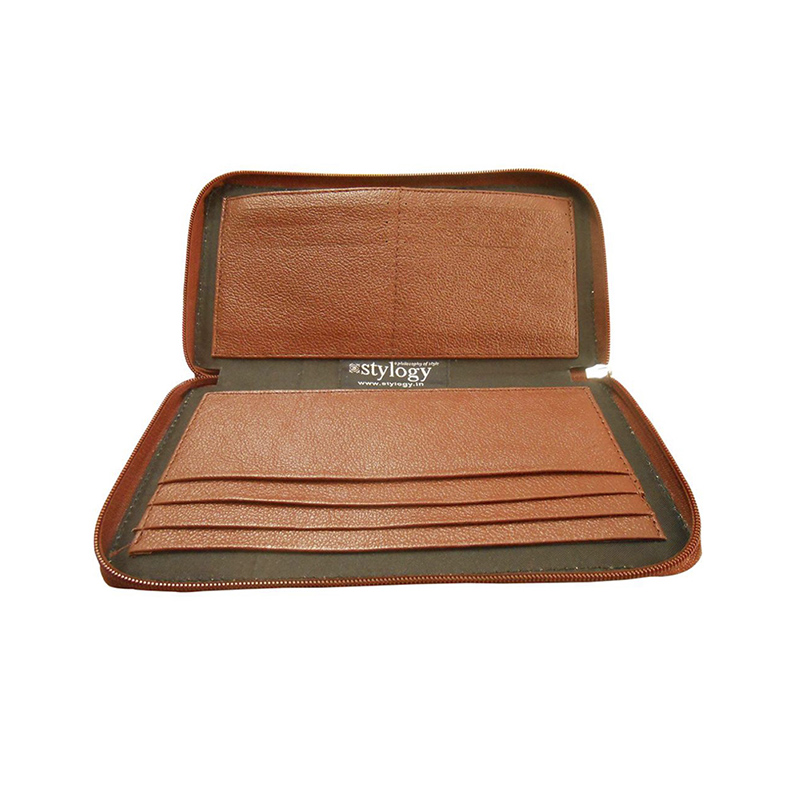 A great companion wallet crafted from brown leather with black polyester inner lining. Design includes multiple slots to carry everyday essentials. Zipper closure.