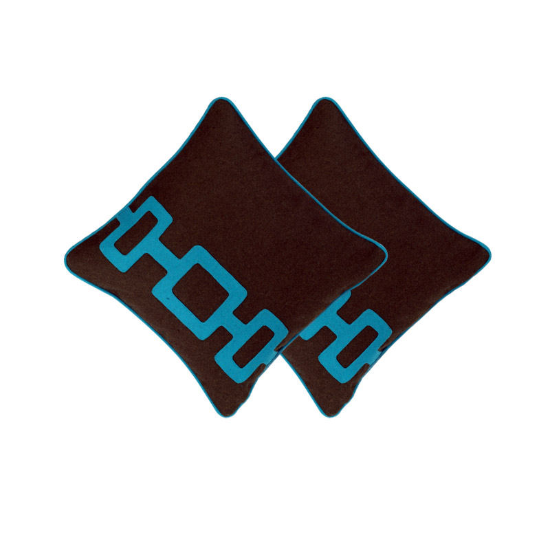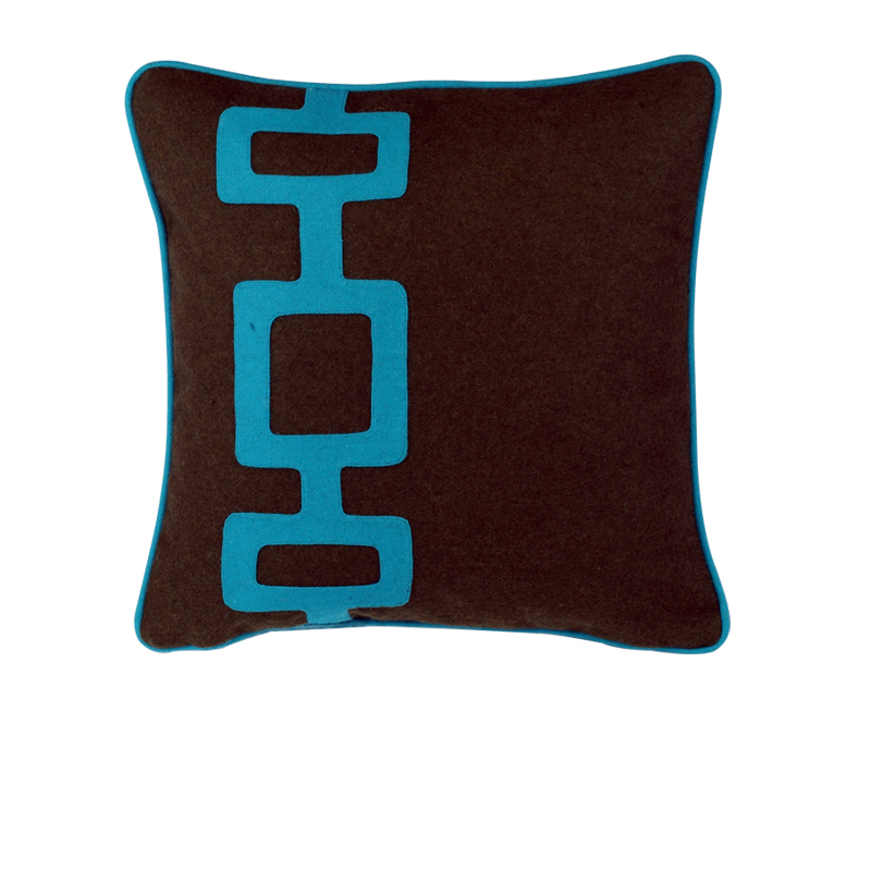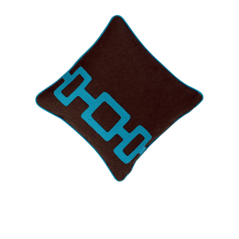Dark heathered green field with turquoise applique in Wool.